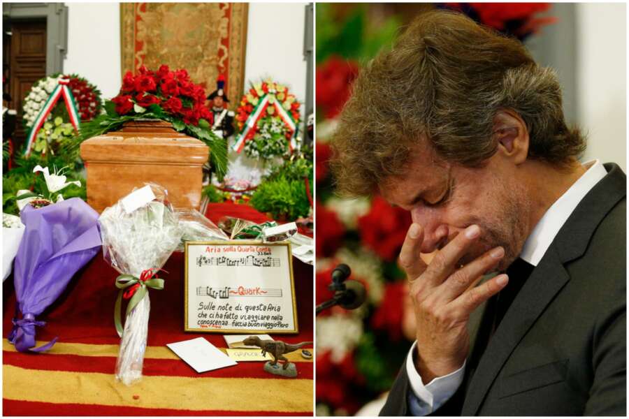 Alberto Angela è rimasto insieme ai suoi figli a ringraziare i presenti e a stringere la mano di quanti hanno voluto portare ricordi, condoglianze e affetto alla sua famiglia per la scomparsa del padre, con cui ha vissuto “come figlio, come collega, come persona normale che si è trovata davanti una mente eclettica, una persona capace di dare la risposta giusta sempre, in qualunque settore, dall’ambito industriale a quello della ricerca con una grande capacità di sintesi e analisi e in modo pacato”.