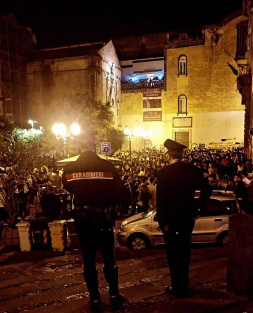 Sabato sera e per l’intera nottata, gli sforzi dei militari si sono concentrati nel centro storico, dove l’allentamento delle misure di contenimento ha dato nuova vita alla movida cittadina. Nel centralissimo largo San Giovanni Maggiore, i carabinieri hanno allontanato e disperso circa 500 ragazzi. Intorno all’una, erano 250 quelli che si erano assembrati in largo Banchi Nuovi. È qui che – come per largo San Giovanni Maggiore – “con equilibrio e fermezza” sono stati evitati problemi di ordine pubblico. Molti dei giovani avevano affollato le piazze già dalle prime ore della sera, in stato di ebbrezza alcolica. Uno di questi, complice lo stato di alterazione, è stato denunciato per oltraggio a pubblico ufficiale.Sono state, complessivamente, 52 le sanzioni Covid elevate. Diffidati due bar in largo San Giovanni Maggiore. I controlli proseguiranno anche nelle prossime ore e nei prossimi giorni.
