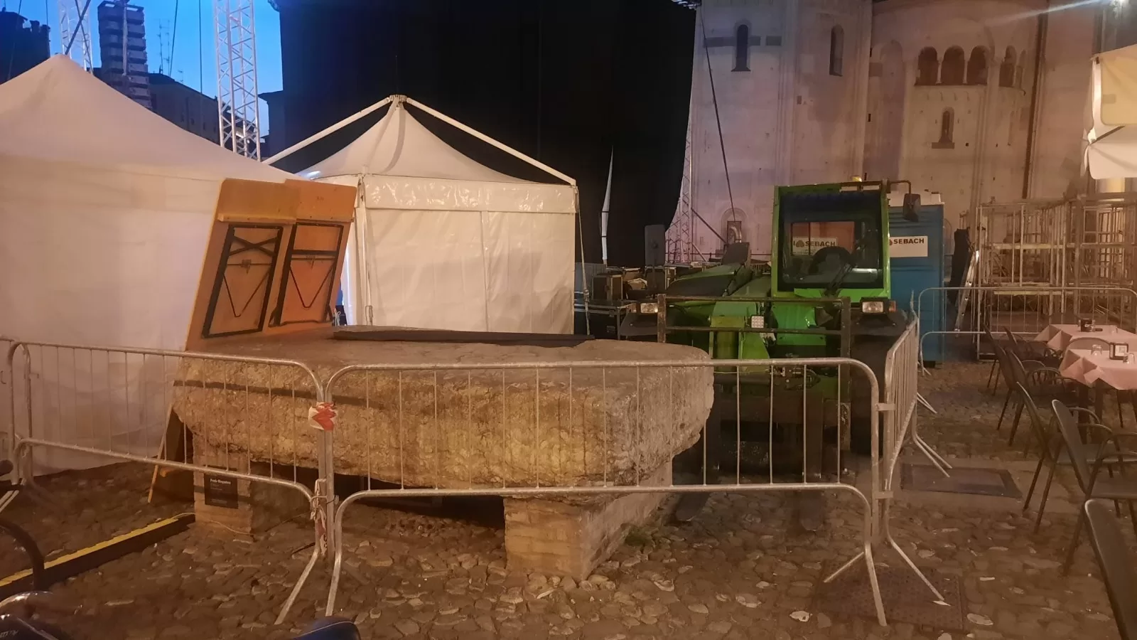 Piazza Grande, il Duomo, la Ghirlandina e la Pietra Ringadora a Modena sono stati dichiarati dall’Unesco siti di eccezionale valore culturale. Alla regolamentazione Unesco si è aggiunta quella comunale, che precisa tempi e modi di realizzazione di eventuali infrastrutture per manifestazioni (24 ore per il montaggio e 24 per lo smontaggio), la distanza minima tra queste infrastrutture e i beni tutelati, la rigorosa salvaguardia dei monumenti. Invece per il Festival della Filosofia – che si è svolto in Piazza Grande da venerdì a domenica scorsa – nessuna prescrizione è stata rispettata: la piazza è stata occupata per più di una settimana, utilizzando incredibilmente la Pietra Ringadora come deposito per attrezzi di scena.