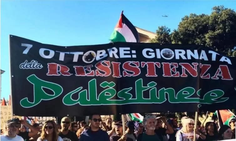 A Roma il corteo per Gaza diventa guerriglia: striscione pro 7 ottobre, petardi e scontri con la polizia
