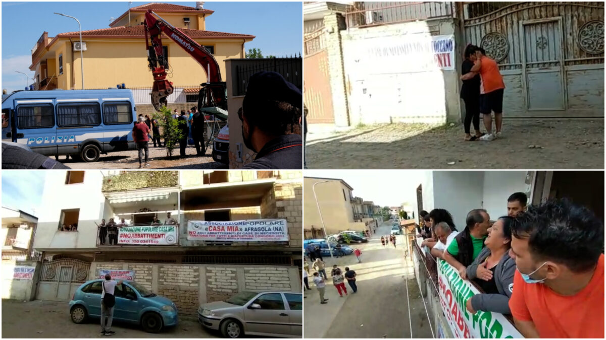 L’abusivismo a Casal di Principe è una piaga enorme. Molte delle costruzioni, tra cui la casa degli Stabile, è stata costruita circa 20 anni fa quando mancavano piani regolatori e altri strumenti urbanistici; una zona dove le strade non sono asfaltate e mancano servizi. “Qui c’era un altro Stato, quello reale ci ha accantonato per anni: tutti costruivano affidandosi a false promesse di politici o credendo ad altre promesse. Poi ora si ricordano di quegli edifici costruiti 20 anni fa – spiegano Comitati a Difesa del diritto alla casa della regione Campania – ancora una volta oggi ci sentiamo abbandonati dallo Stato”. “Ogni colpo della ruspa è una pugnalata al cuore” dice la proprietaria di un altro stabile vicino, pure abusivo. “Tanti sacrifici inutili”. Alla fine della mattinata gli Stabile sono usciti senza opporre resistenza e sono andati via in lacrime. “Li buttano in strada con 4 bambini piccoli, che vergogna!”, gridano i manifestanti.