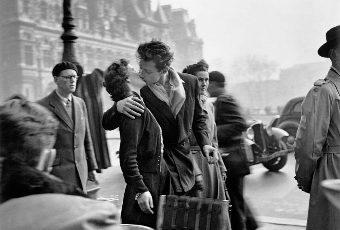 Negli anni ’80 divenne lo scatto simbolo di un bacio rubato, intitolato “Le baiser de l’Hotel de ville”. Sullo sfondo, bianco e nero, una metropoli caotica e in movimento. Al centro dell’immagine il tempo sembra immortale.