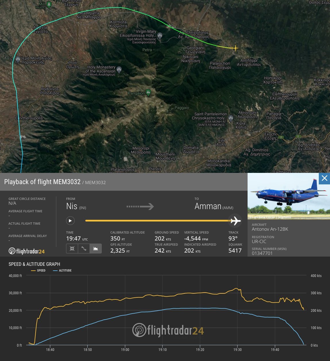 #Ukrainian 🇺🇦 registered #antonov An-12 (UR-CIC) just crashed in #Greece 🇬🇷 near the city of #Kavala It departed from #Serbia 🇷🇸 (Nis) and was going to #Jordan 🇯🇴. Is the #Russian 🇷🇺secret service based in city of #Nis in Serbia, behind this action? pic.twitter.com/qbCi1xeSnY
