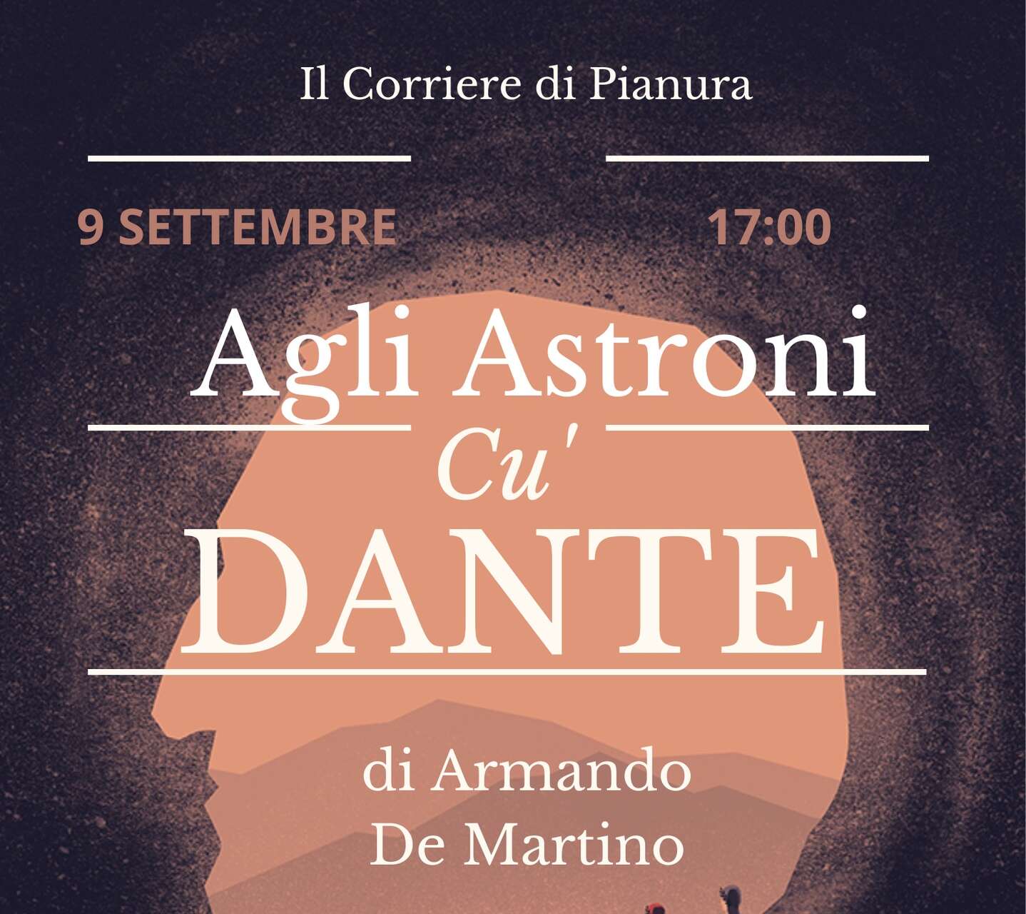 Il Corriere di Pianura è lieto di comunicare che il giorno 9 Settembre 2022 alle ore 17 si terrà un evento letterario unico “Agli Astroni Cu’ Dante” scritto da Armando De Martino: un’esplorazione contemporanea in lingua napoletana dei passi più suggestivi del viaggio dantesco accompagnato da musica e danza, all’interno del cratere del Parco degli Astroni.