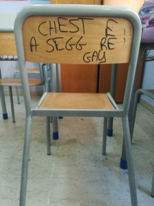 Madrina del festival sarà la sedia con la scritta “chest è a segg re gay”, che tradotto in italiano è “questa è la sedia dei gay”, trovata da un professore in classe il giorno degli esami e su cui ha scelto di sedersi e svolgere il suo lavoro, nonostante il parere contrario di alcuni colleghi. “Un comportamento che ha trasformato la sedia dei gay, da oggetto di bullismo, discriminazione e omofobia a simbolo positivo di riscatto per la diffusione di una cultura delle differenze, temi affrontati nella sezione Educational del Festival “OMOVIES@SCHOOL”, motivo per cui abbiamo scelto che fosse “Lei” la testimonial di quest’anno» spiegano gli organizzatori. La sedia verrà installata al Made in Cloister dove verranno invitati gli ospiti ad immortalarsi in uno scatto contro le discriminazioni.