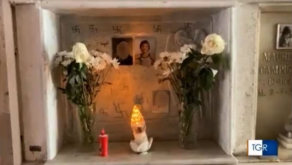 La notizia è stata diffusa dal TgR del Lazio. La lapide di Alfredino, imbrattata con undici svastiche naziste, è al cimitero del Verano di Roma.