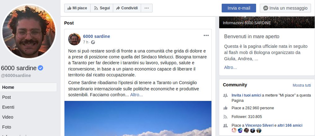 Su Facebook le Sardine vanno forte con una pagina che ha 282.000 iscritti e 310.000 persone che la seguono. Un dato esorbitante se consideriamo che in appena 4 mesi è stato raggiunto questo risultato. Una visibilità mostruosa, come spesso ammette Santori, che oramai è stata adocchiata da tutti i big players della politica e già questo serbatoio di consenso virtuale fa gola e rende Santori e company il primo partito virtuale italiano che, a differenza della destra di Salvini e Meloni, aspetta un leader forte che possa mettere il cappello oppure un partito che possa dargli la giusta benedizione politica.