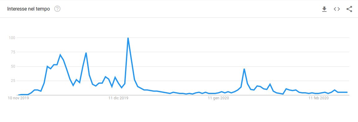 Anche Google Trends conferma l’andamento esplosivo dei primi mesi e più basso, ma sopra la media di molti soggetti politici, dell’ultimo periodo. Non è un caso che le Sardine in questo momento si stanno riorganizzando per affrontare le prossime battaglie politiche amministrative.