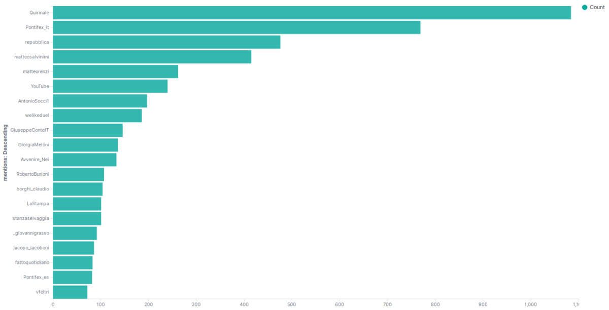 Anche tra i profili più menzionati figura quello del Quirinale seguito dal Papa, ma sorprende la posizione al terzo posto di Repubblica con lo scontro Salvini Renzi che segue. Presenti in classifica anche Roberto Burioni e Selvaggia Lucarelli. Posizione di mezza classifica per l’Avvenire e Giorgia Meloni, Giuseppe conte dietro anche al polemico Socci.