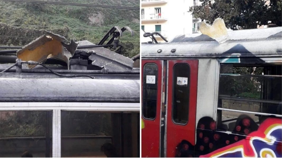 Il caso è rimbalzato su tutti i social. Molto probabilmente il vagone del treno ha urtato contro un ramo di un albero lungo la tratta Napoli-Sorrento. Ad accorgersi che c’era un problema, ieri mattina, gli operatori di Eav a bordo di un convoglio fermo per il normale servizio passeggeri a Castellammare di Stabia e diretto in penisola. Ad allertare i controllori e gli utenti, l’insolito rumore che proveniva da una parte del convoglio: rumore che ha indotto il personale a procedere ad una verifica che ha portato alla scoperta dello ”scoperchiamento” di una parte della lamiera (ma non del treno, visto che la struttura interessata va a coprire quella principale dei singoli vagoni).
