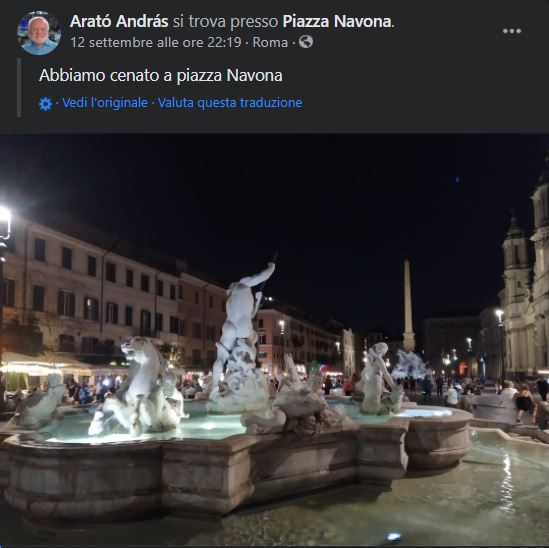 Con il suo marchio di fabbrica, il sorriso stampato sulle labbra come da meme, ha scattato foto e selfie in giro per la città. András Arató ha visitato piazza Navona, il Vaticano, Fontana di Trevi, gli studi di Cinecittà, piazza Venezia, il centro storico. L’ultimo giorno nella Capitale lo ha passato ieri, a cena, all’Hotel Teatro Pace. Chi ha avuto il colpo d’occhio per riconoscerlo si è anche scattato una foto con lui, come un vip.