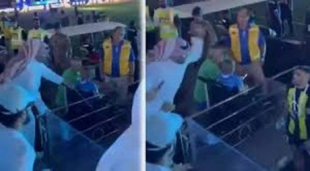 Nel filmato si vede l’attaccante avvicinarsi e lanciare dell’acqua presente nella borraccia, probabilmente in risposta a insulti. Un gesto che ha scatenato la reazione del tifoso, probabilmente dell’Al-Ittihad, che tira fuori una frusta e colpisce due volte il calciatore. Quest’ultimo prova a replicare ma viene fermato dalle presone presenti in campo. E pensare che sempre un tifoso dell’Al-Ittihad lo scorso agosto aveva regalato un rolex al centrocampista Fabinho dopo una vittoria in campionato per 3-0.