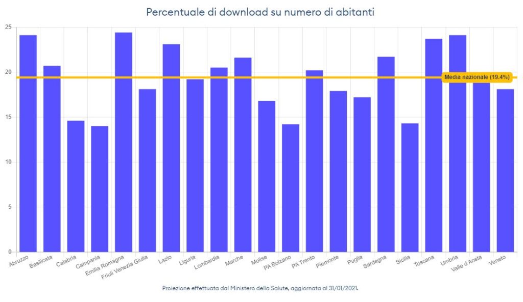 Numeri che, se confrontati con quelli della NHS Covid app, il sistema di tracking dei contagi messo in piedi dal governo inglese, destano imbarazzo. Uno studio dell’Alan Turing Institute (solo sottoposto a peer-review) evidenzia infatti che l’app è stata in grado di prevenire circa 600mila infezioni a fine dicembre 2020. Da impallidire anche i numeri di download, superiori ai 21 milioni, così come le notifiche inviate, ben 1.7 milioni.