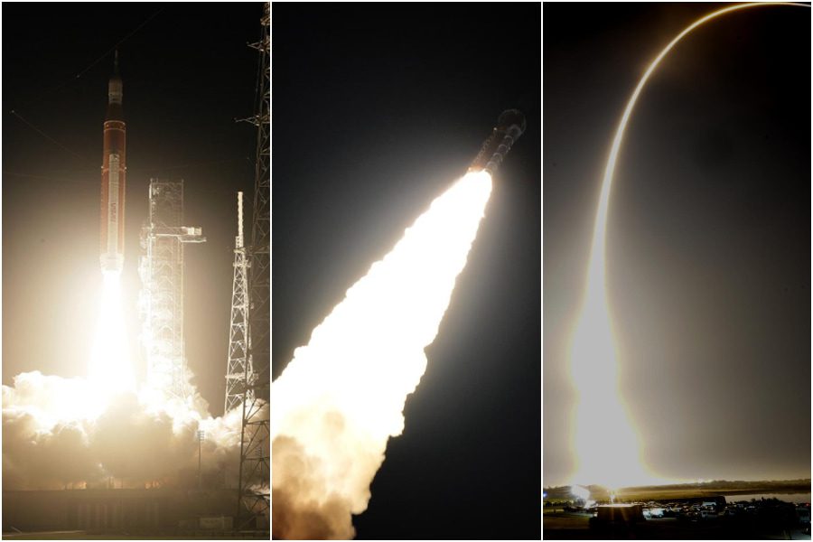 A circa due minuti dal lancio, avvenuto dalla piattaforma 39B del Kennedy Space Center, in Florida, i razzi a propellente solido (Solid Rocket Boosters), i più grandi di questo tipo mai costruiti, si sono separati, per cadere dopo pochi minuti nell’oceano Atlantico. Quindi il motore principale si è spento e lo stadio principale del razzo Sls (Space Launch System) si è separato, cadendo nell’oceano Pacifico.