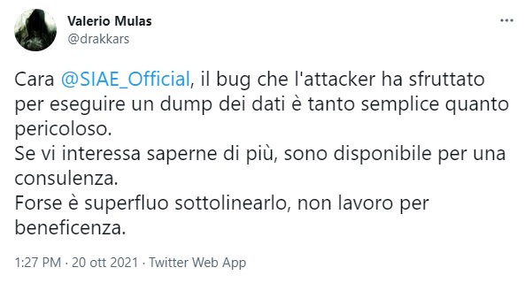Nel mentre, la SIAE ha avvisato il Garante della Privacy secondo quanto previsto dalle norme in essere del GDPR e si indaga su come sia stato possibile, un utente su Twitter ha dichiarata di sapere di cosa si tratta.