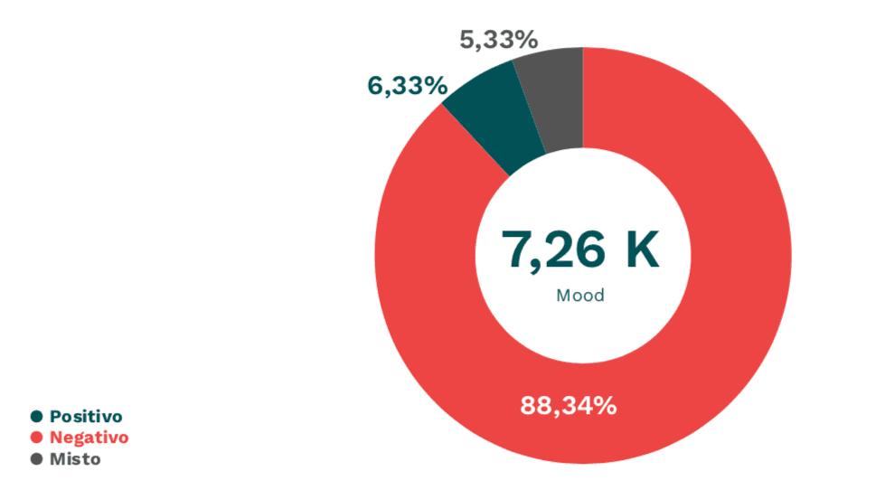 Negli ultimi dodici mesi, dal 15 maggio 2022 al 15 maggio 2023, la chiave di ricerca “Ultima Generazione AND attivisti” ha raccolto in Rete un totale 7.850 menzioni di cui 7.260 con un chiaro ed univoca indicazione di opinione qualitativa. L’88,34% degli utenti che online si sono relazionati con la keyword specifica di ascolto hanno manifesto un comportamento negativo, mentre appena il 6,33% di contro hanno rilasciato un atteggiamento positivo.