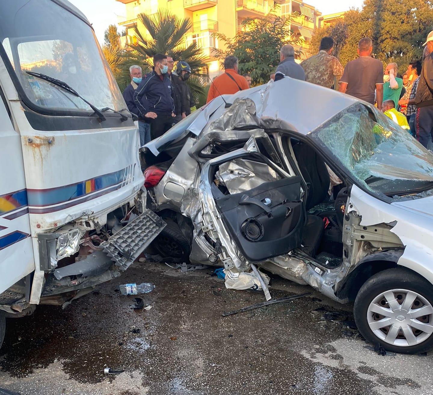 Ad avere la peggio sarebbero stati proprio i due bambini e la donna nell’automobile. La Renault compariva dopo lo scontro quasi completamente accartocciata. È dotata di impianto a gas. È stata praticamente schiacciata contro la rotatoria in piena area Nord di Napoli.