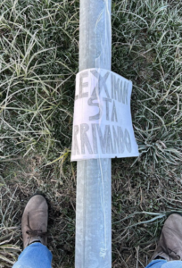 Un cartello, lasciato a fianco del palo abbattuto, con la scritta “Fleximan sta arrivando” a caratteri cubitali. Fleximan rischia grosso eppure per la prima volta firma l’ultimo abbattimento a Villa del Conte nell’Alta Padovana.
