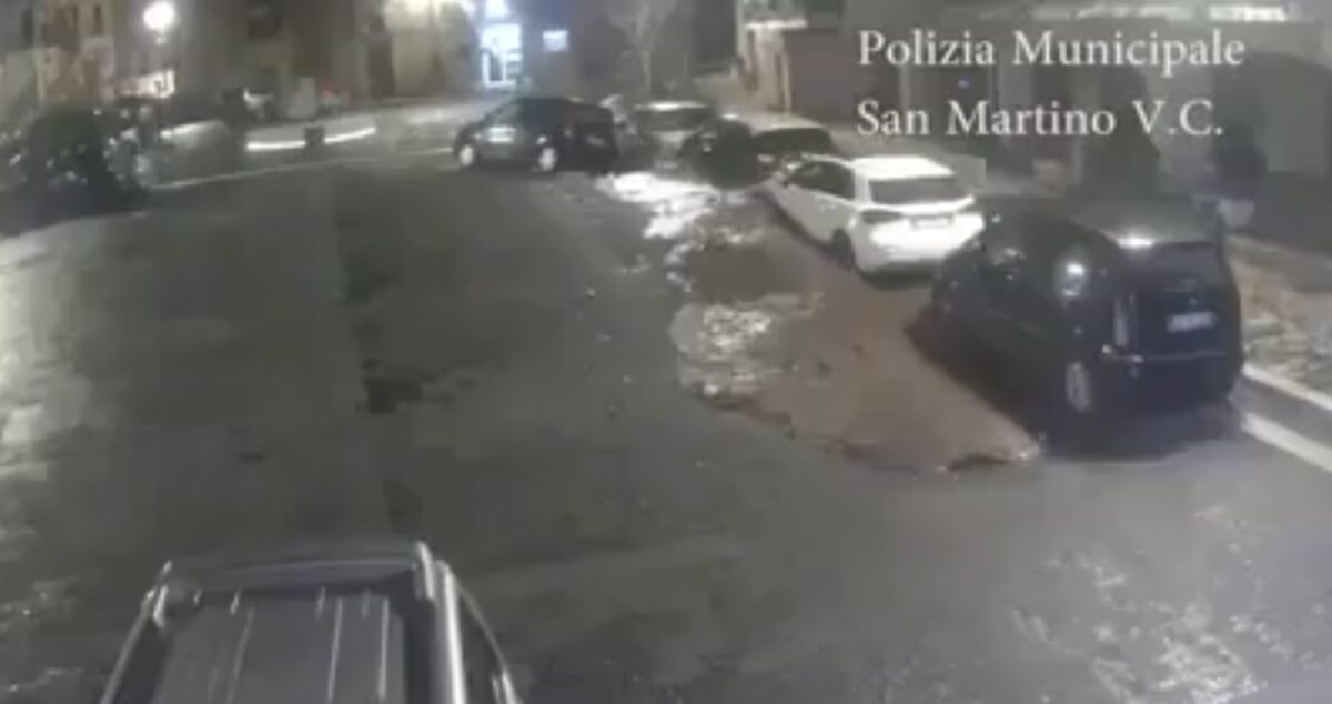 Il torrente interrato esonda e in un attimo la strada si gonfia di fango che spazza via tutto. Sono queste le immagini impressionanti diffuse dalla Polizia Municipale di San Martino Valle Caudina, paese della provincia di Avellino.