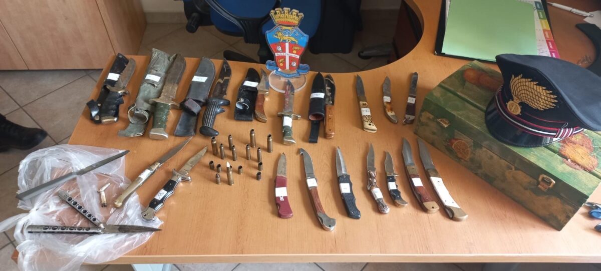 Si avvicina l’estate e si intensificano i servizi di controllo del territorio dei Carabinieri della compagnia di Pozzuoli nelle aree del litorale flegreo. Diciotto tra pugnali e coltelli di varie dimensioni e tipologie: doppia lama, a serramanico, stiletti e baionette americane. Non solo lame, anche 5 bossoli cal. 9,45, 3 cal. 21X50, 1 proiettile calibro 21X50, uno cal. 9X19 e 6 bossoli cal. 9X19. Un vasto campionario recuperato dai Carabinieri della Stazione di Monte di Procida che è costato ad un pensionato del 56 una denuncia per detenzione illegale di arma e munizionamento di tipo militare.