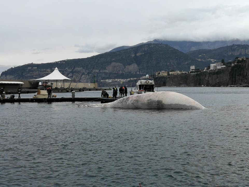 Il giorno successivo, sabato mattina, a causa dei gas sviluppatisi per i fenomeni degenerativi, il cetaceo è spontaneamente emerso all’interno del porto di Sorrento, manifestandosi nella sua imponenza. Le operazioni di recupero si rendevano urgenti per le evidenti ripercussioni igienico sanitarie che avrebbero comportato necessariamente l’inibizione delle attività portuali.