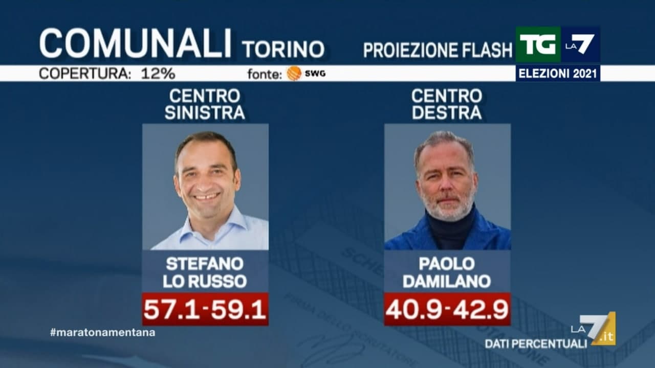 ORE 15:48 – Prima proiezione di Swg per Tg La7: Lo Russo al 58,60%, Paolo Damilano al 41, 40%