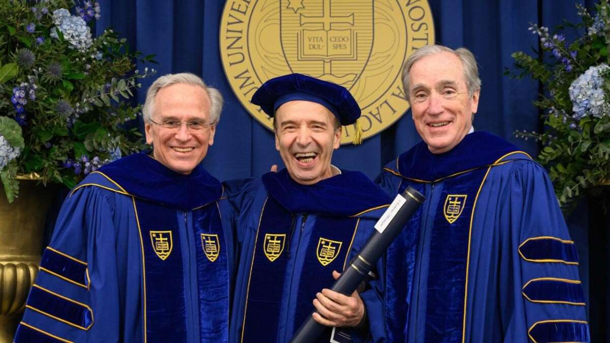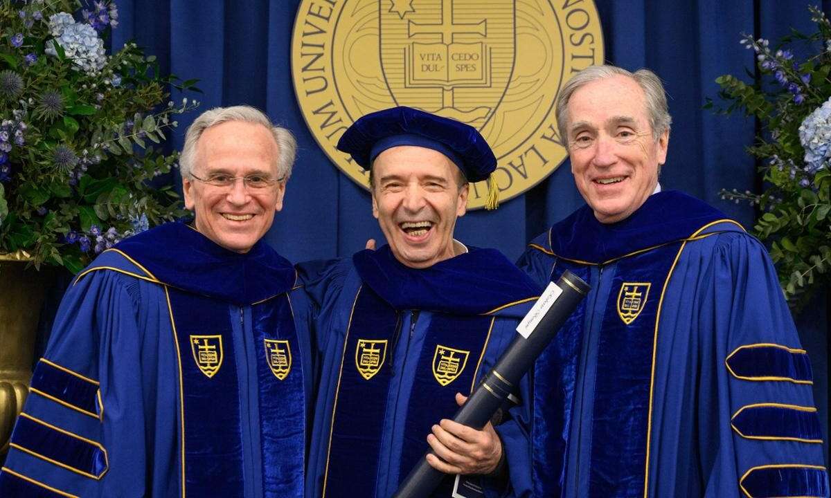 Chi se lo sarebbe immaginato nel 1977, guardando quel toscano secco e allampanato vestito in modo improbabile in “Berlinguer ti voglio bene”, mentre vagava imprecando e bestemmiando per i campi della periferia di Prato, che sarebbe finita così? Roberto Benigni, settantadue anni il prossimo ottobre, ha ricevuto ieri nella sede romana della Notre Dame University la sua undicesima laurea honoris causa, indossando sorridente il tocco ottagonale e la tunica viola e oro d’ordinanza. Notre Dame è un’università americana cattolica, che ha voluto celebrare il guitto italiano – che tanto guitto più non è, e non certo per via delle certificazioni che sta collezionando – per il suo lavoro di attore, regista e sceneggiatore. Nella motivazione che ha accompagnato la celebrazione si legge: “attraverso la sua narrazione innovativa e schietta, ha invitato tutti coloro che sperimentano la sua arte a un rapporto più profondo con l’umanità e il divino, riuscendo a illuminare percorsi di speranza e bellezza anche nel mezzo di indicibili tragedie e disperazione”. Con lui, premiati dal presidente dell’Università, John I. Jenkins, anche la direttrice dei Musei Vaticani, Barbara Jatta, e segretario del dicastero per la Promozione dell’Unità dei Cristiani Monsignor Brian Farrell L.C., definiti con Benigni “tre leader eccezionali nei rispettivi campi“ da Jenkins.