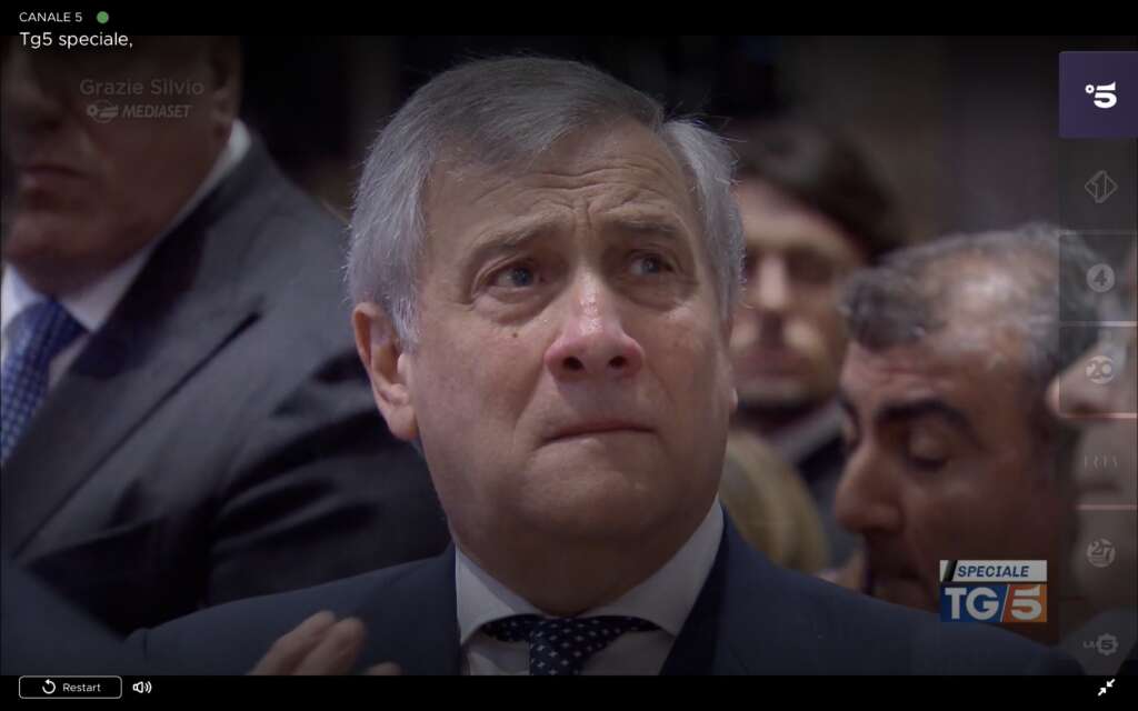 Ore 15.04. Le telecamere riprendono il Ministro degli Esteri, Antonio Tajani, commosso e in lacrime