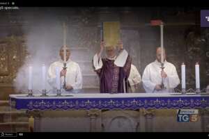 Ore 14.33. L’interno del Duomo di Milano è gremito. Sono stati posizionati degli schermi per consentire a tutti di seguire la funzione religiosa