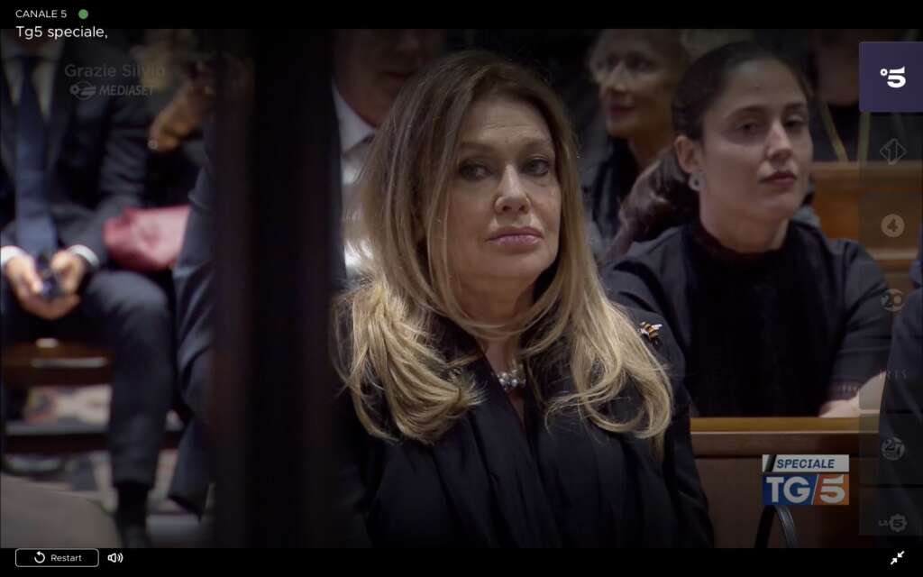 Ore 14.38. La commozione della seconda moglie, Veronica Lario.