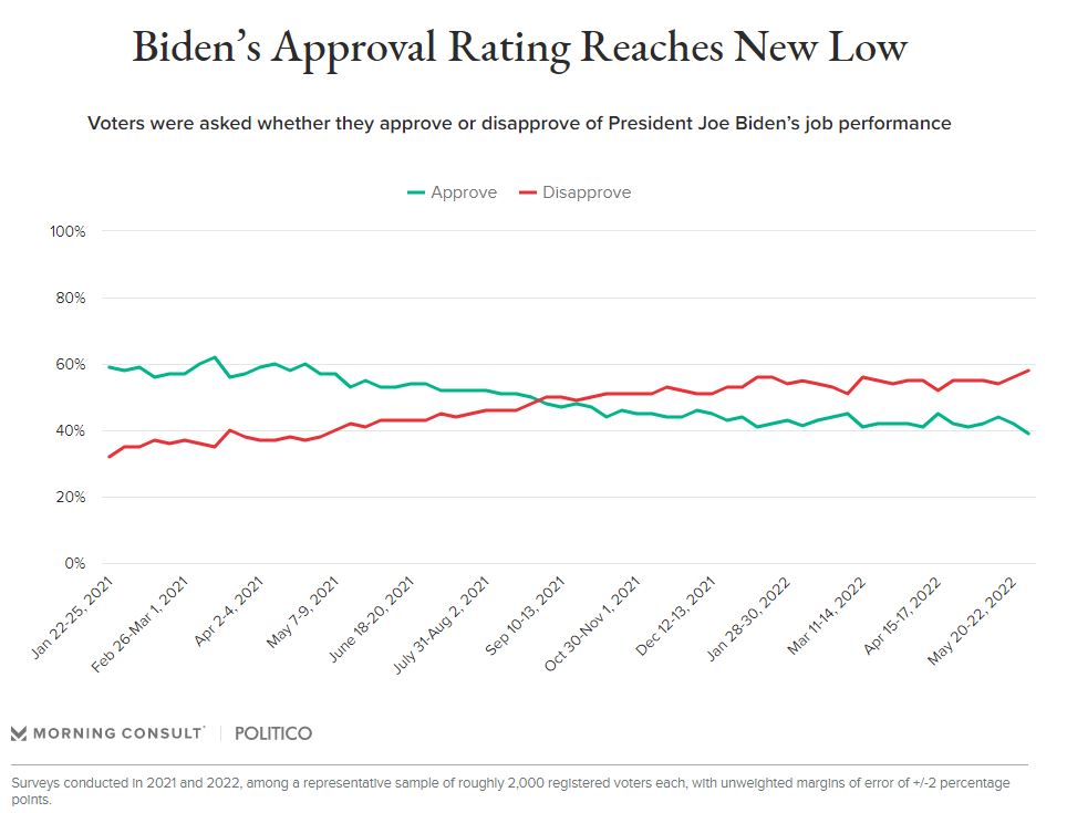 Per fare un paragone che non farà piacere alla Casa Bianca, il tanto vituperato Donald Trump aveva raggiunto simili livelli di approvazione soltanto giugno 2020, di fatto a fine mandato e di fronte ad una pandemia di Coronavirus e alle proteste per l’uso della forza da parte delle forze dell’ordine dopo il caso George Floyd.