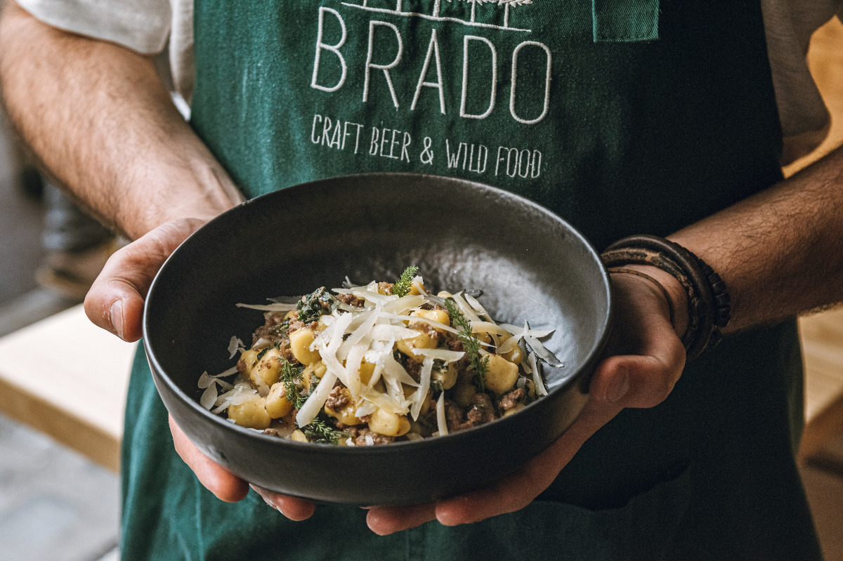 Manuel (responsabile della comunicazione), Christian (responsabile f&b e coordinatore di sala e cucina) e Mirko (che segue le attività relative alla logistica ed alla automatizzazione del locale) sono anche grandi appassionati di birra artigianale e da Brado hanno voluto utilizzare uno dei migliori impianti della città, che consente loro di servire esclusivamente birre prodotte da micro birrifici artigianali. L’ampia carta dei vini con etichette provenienti da piccole aziende biologiche che testimoniano il legame ed il rispetto per il territorio, e le oltre 200 referenze tra whisky, mezcal e rum contribuiscono a rendere estremamente ricca l’offerta beverage di Brado. L’atmosfera del locale, un bellissimo spazio nel quale coesistono elementi artigianali come gli oggetti in ferro battuto di Emanuele Pascucci ed il legno, è pervaso dall’energia creata dalla sinergia tra le persone. Aperto il mercoledì e il giovedì dalle 17 fino a sera ed il venerdì, sabato e domenica dalle 12 fino alla chiusura, Brado può contare su uno spazio all’aperto con 50 coperti, per gustare selvaggina e buona birra in un ambiente unico.