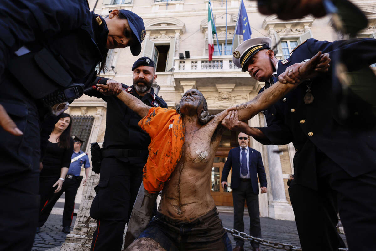 Ancora un blitz, dunque, da parte degli ambientalisti che già due giorni fa hanno imbrattato la Fontana di Trevi utilizzando un liquido nero versato all’interno della fontana. “Il fango versato oggi rappresenta il risultato delle politiche portate avanti a Palazzo Madama”, ribadiscono gli attivisti che già nei mesi scorsi avevano preso di mira la sede del Senato.