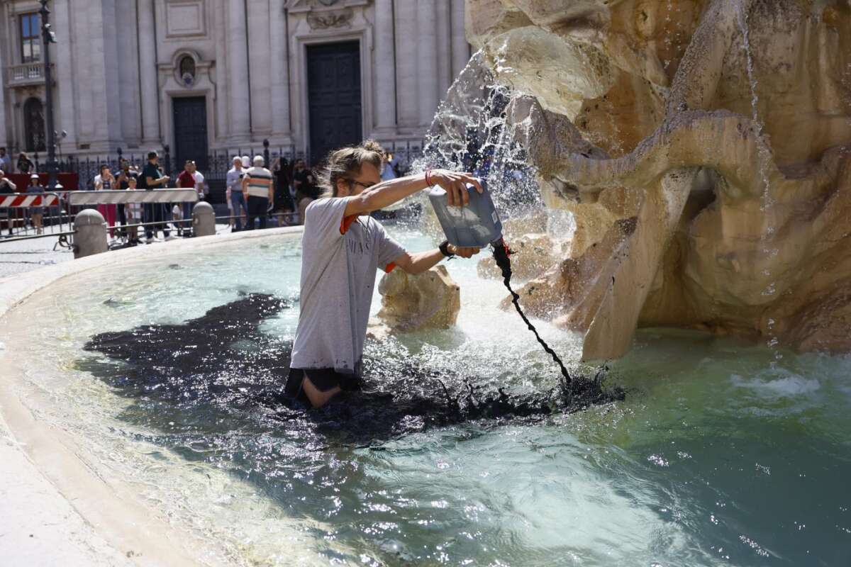 Nel pomeriggio di sabato 6 maggio, quattro attivisti della campagna “non paghiamo il fossile”, promossa da Ultima Generazione, hanno versato carbone vegetale diluito in acqua nella fontana dei Quattro fiumi a piazza Navona.