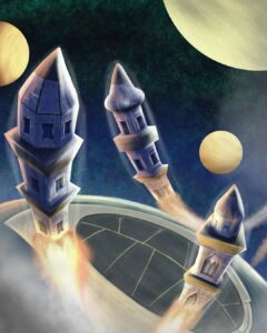 «Il campanile proteso verso l’alto è metafora dei nostri ragazzi che vanno fuori dalla nostra città per studiare e per trovare fortuna. Spesso, però – prosegue Santamaria Ferraro -, vengono rappresentati come dei disperati, degli sbandati. E invece sono dei pionieri, che possono acquisire competenze altrove per riportarle sul proprio territorio». Il razzo, naturalmente, è una metafora. «Certo. È metafora della sfida generazionale, del dinamismo, è uno sprone molto forte a lasciarsi alle spalle quel vittimismo che troppo spesso è presente nei giovani e che diventa una giustificazione alla situazione che si vive. Invece noi vogliamo lanciare un altro messaggio: è anche questione di volontà e di potenza».