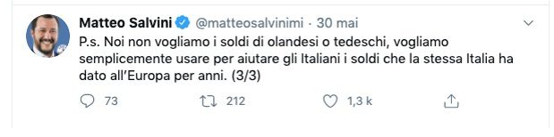 Nella proposta della Commissioni ci sono due grandi novità (tabù fino ad oggi): la messa in comune del debito per gli investimenti necessari al rilancio dell’economia europea et il concetto di sovvenzioni a fondo perduto. Insomma l’Europa c’è ed è solidale. Adesso starà ai Capi di Stato e di Governo il 19 giugno di essere all’altezza della situazione, per non dire della Storia.