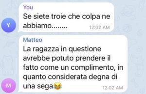 Oppure, più di recente, troviamo ‘Matteo’ e ‘You’ i quali, dopo che un admin del gruppo ha segnalato il polverone mediatico intorno a Telegram, così ‘giustificano’ le loro schifezze.