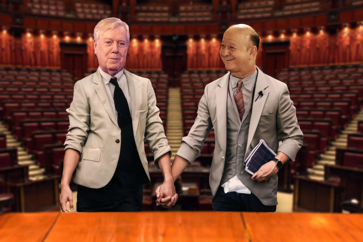 Ezio Greggio sottosegretario alla Presidenza (“Lui e Iacchetti hanno il polso del paese reale”, sostiene Mollicone), con Valerio Staffelli ministro dell’Interno (Cattaneo benedice l’idea: “Scherzi? Ha consegnato tapiri in tutta Italia: conosce palmo a palmo il territorio”); Michelle Hunziker Ministro degli Esteri: (“Altro che Tajani, vuoi mettere con quel cognome quanto stanno tranquilli a Berlino?” dice Barelli); Umberto Smaila alle Riforme (“Con le ragazze cin-cin ha riformato più lui l’Italia che 30 anni di Seconda Repubblica”, dice Maurizio Lupi), e Giorgio Mastrota al Commercio con l’Estero (“Vuoi mettere come ci venderebbe bene nel mondo, quello piazza pure i materassi a Putin” sottolinea Licia Ronzulli).