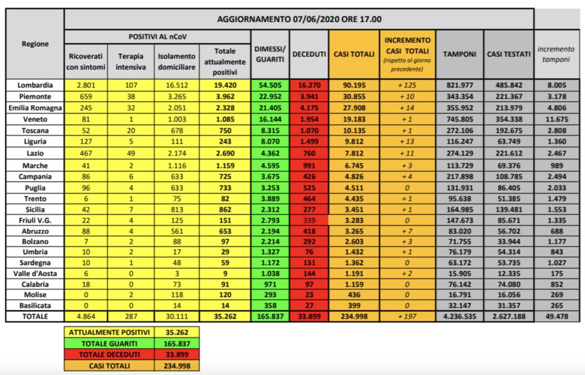 Aggiornamento dati sanitari del #7giugno 👉 https://t.co/xj18RgP558