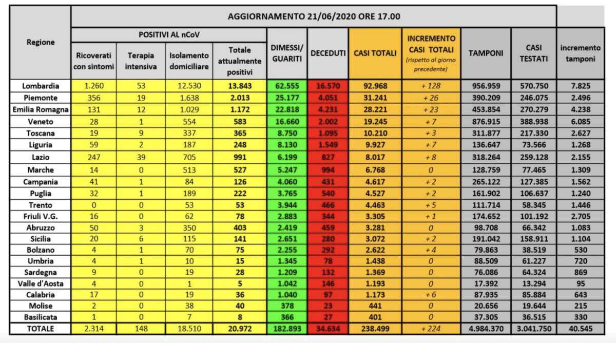 Aggiornamento dati sanitari del #21giugno 👉 https://t.co/RneWTFucma