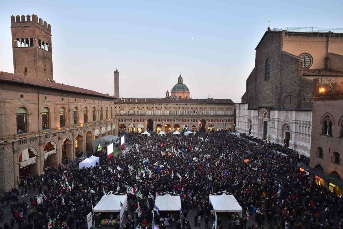 Non una piazza contro, ma una piazza ‘del passo avanti’, senza big politici di partito ma non senza bandiere (“tutte quelle che volete”, era stato detto, numerose quelle del Pd sotto al palco assieme a qualche bandiera dell’Europa, bandiere anche dei Verdi arrivati con uno striscione lungo 15 metri a riempire il ‘crescentone’ ), per tracciare l’Emilia Romagna del futuro, nel giorno di avvio ufficiale della corsa per le Regionali in Emilia Romagna all’insegna dello slogan ‘la forza delle persone’. Su queste premesse, con ‘Bella ciao’ cantata dal palco e dalla gente ha preso il via in Piazza Maggiore a Bologna la grande manifestazione che segnerà l’avvio ufficiale della corsa del governatore Pd uscente Stefano Bonaccini candidato per un mandato bis in vista del voto del 26 gennaio.
