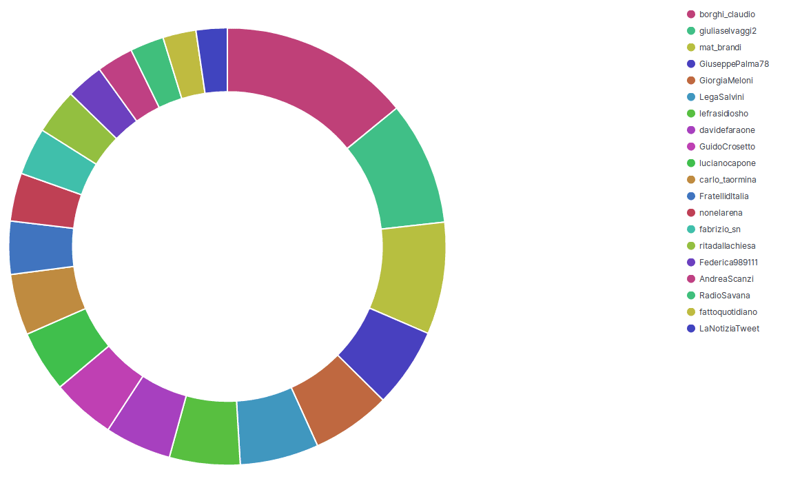 TOP TWEETS – Facendo un’analisi degli influencer del JusticeGate all’italiana notiamo che ad aver racimolato consensi sui social sono stati i dissidenti Claudio Borghi, Giulia Selvaggi, mat_brandi, GiuseppePalma78, Giorgia Meloni, LefrasidiOsho, DavideFaraone, Guido Crosetto, Luciano Capone, Carlo Taormina e Annalisa Chirico con Andrea Scanzi che ha cercato di tenere alto l’onore dei difensori del Ministro. Assente d’eccezione in questo giro di polemiche Matteo Salvini, che ha preferito mandare avanti la Lega nel fomentare la polemica social.