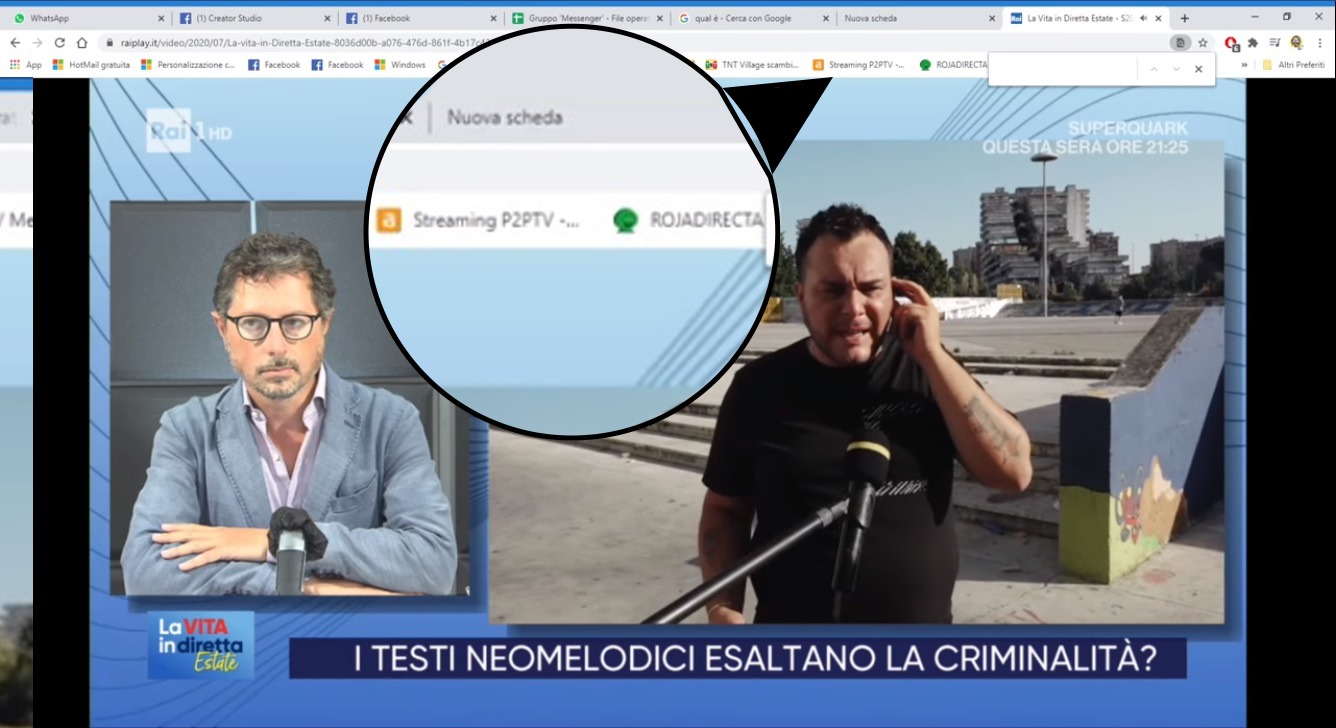 Borrelli è per la legalità e tutte le sue azioni sono mosse da questo principio fondamentale. In uno degli ultimi video pubblicati su Facebook mostra il suo intervento a ‘La vita in diretta‘ sul caso del concerto abusivo di un neomelodico che c’è stato il 28 luglio scorso a Pianura, popoloso quartiere occidentale di Napoli. Nel video, però, il paladino della legalità (o chi per lui) non si è accorto di non aver tagliato tutto ciò che si vede nel browser Google Chrome. E da un semplice sguardo si può immediatamente notare che Borrelli (o ripetiamo chi gli ha scaricato il video) è un fruitore di siti pirata.