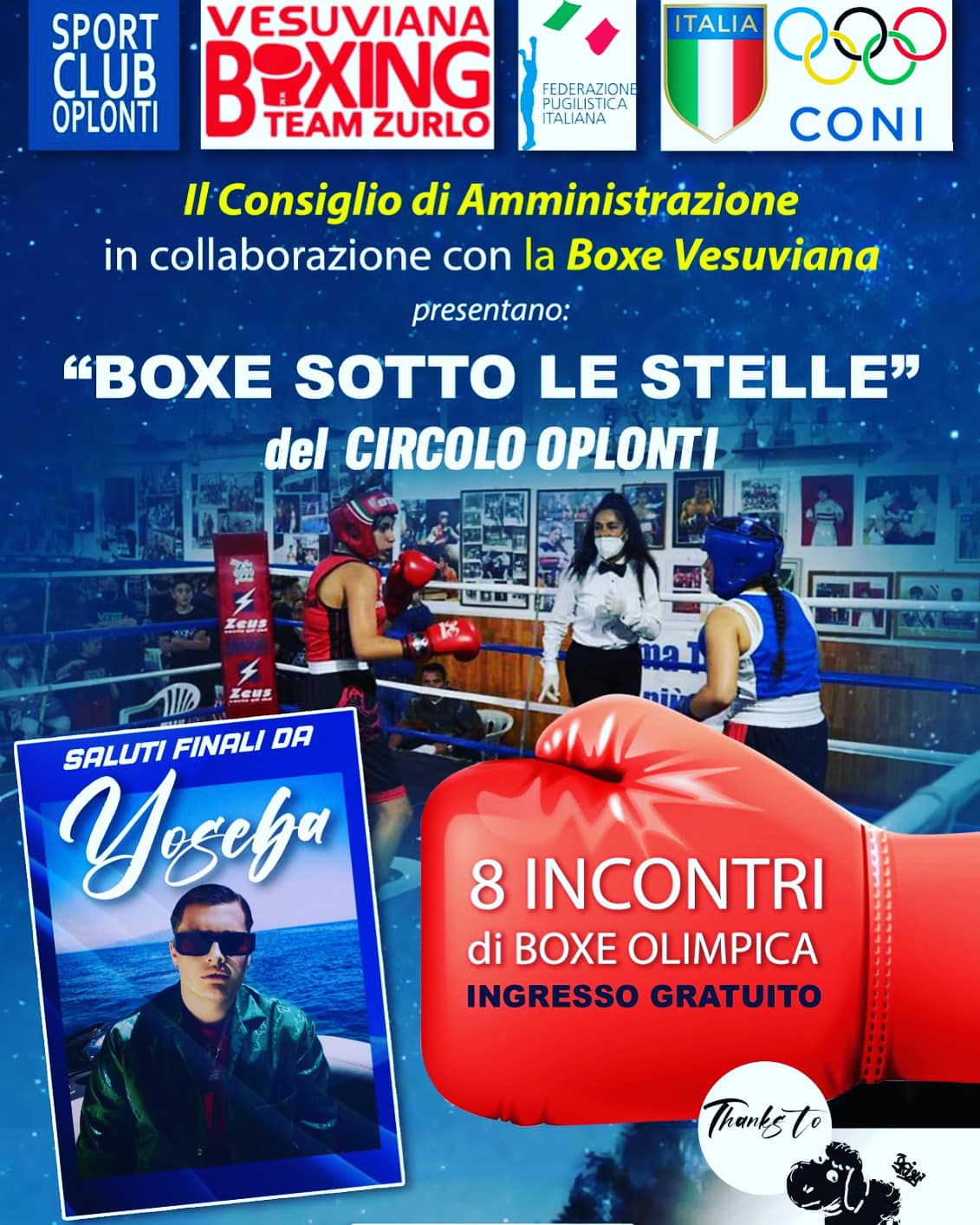 Il team Zurlo anticipa che saranno una decina i match in programma con atleti della Boxe Vesuviana che si confronteranno con i pari peso prevenienti da altre province della Regione. A completare il programma della serata anche la partecipazione speciale di Yoseba: il cantante emergente già nuova promessa della scena urban napoletana. Fuori i secondi.