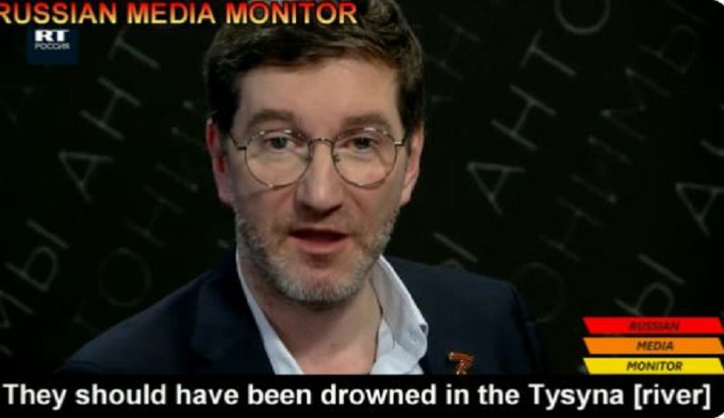 Meanwhile on Russia’s state-funded RT, director of broadcasting Anton Krasovsky suggests drowning or burning Ukrainian children, makes hideous comments about the rapes by Russian soldiers in Ukraine, says Ukraine should not exist and Ukrainians who resist Russia should be shot. pic.twitter.com/BGIaBNok4v