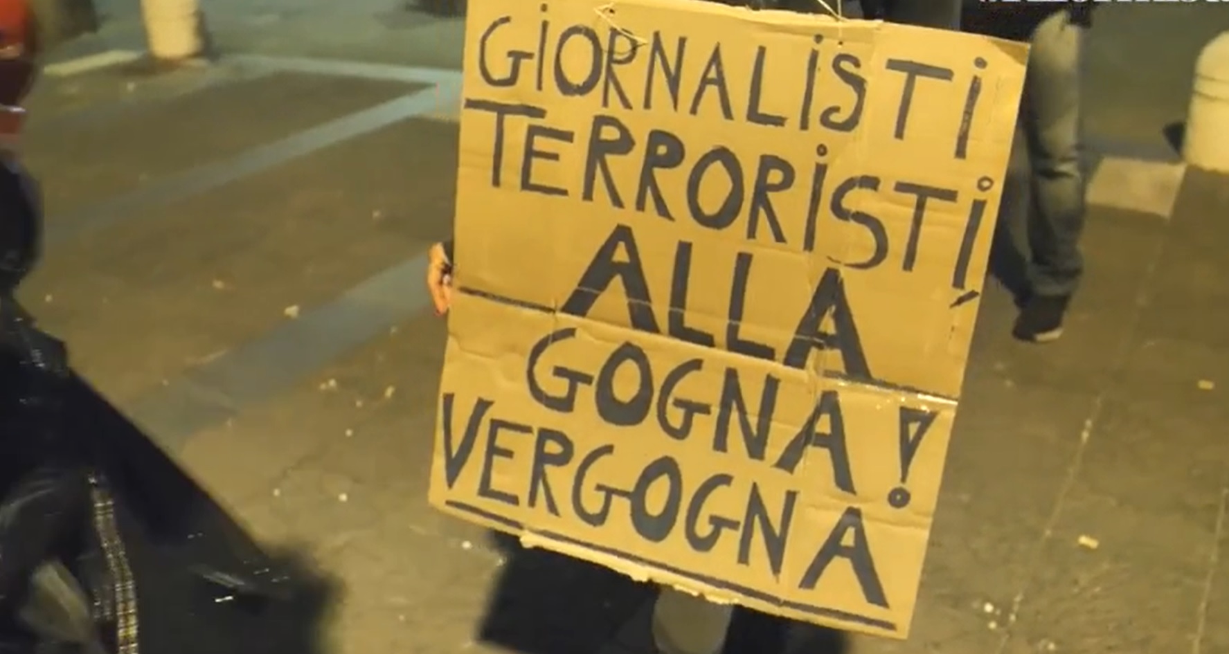 Un pensiero che per chi ha seguito con passione e dedizione varie proteste si è sentito ripetere spesso. Il 2 novembre la scena sotto la Regione Campania è stata ancora più violenta, magari non fisicamente, come durante gli scontri di quel primo venerdì di coprifuoco, ma verbalmente sicuramente si. Nelle immagini si vede il gruppo dei giornalisti impugnare telecamere e microfoni e dal lato opposto alcuni manifestanti gli gridano in faccia “giornalaio!”, “venduti!” e poi in coro “servo, servo, servo!”.