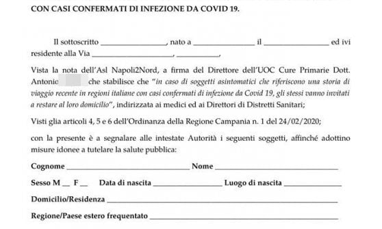E’ la stessa ASL Napoli 2 Nord a smentire. “Tale modulo – si legge in una nota – non è assolutamente stato prodotto dagli uffici aziendali, non ha alcuna rilevanza in termini di sanità pubblica e lede le norme a tutela della privacy. L’Azienda Sanitaria segnalerà al Garante Nazionale per la Privacy quanti invieranno agli uffici aziendali tale modulo e verificherà se esistono i presupposti per effettuare denuncia all’autorità giudiziaria”.