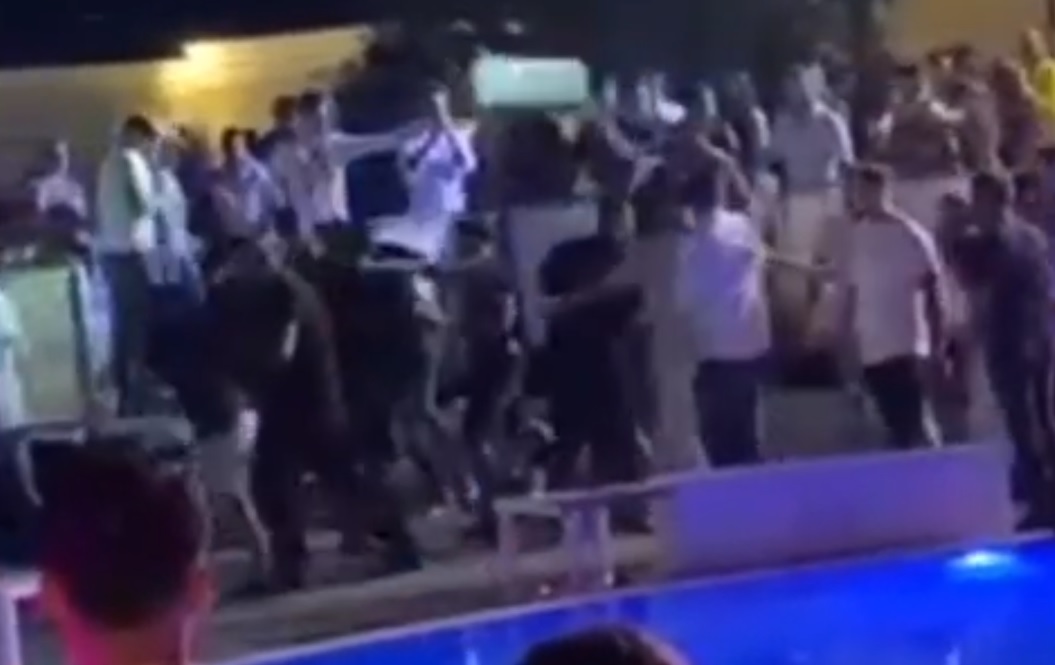 Sono volate sedie e tavoli presenti a bordo piscina. Poi la vittima designata è stata accerchiata dal branco e presa a calci e pugni.
