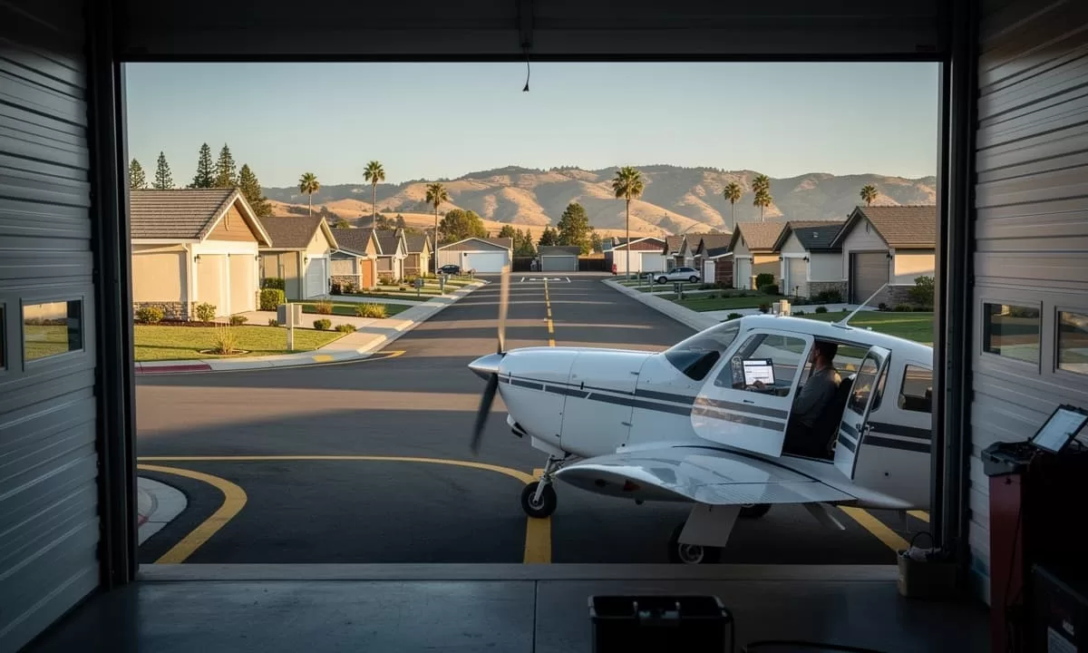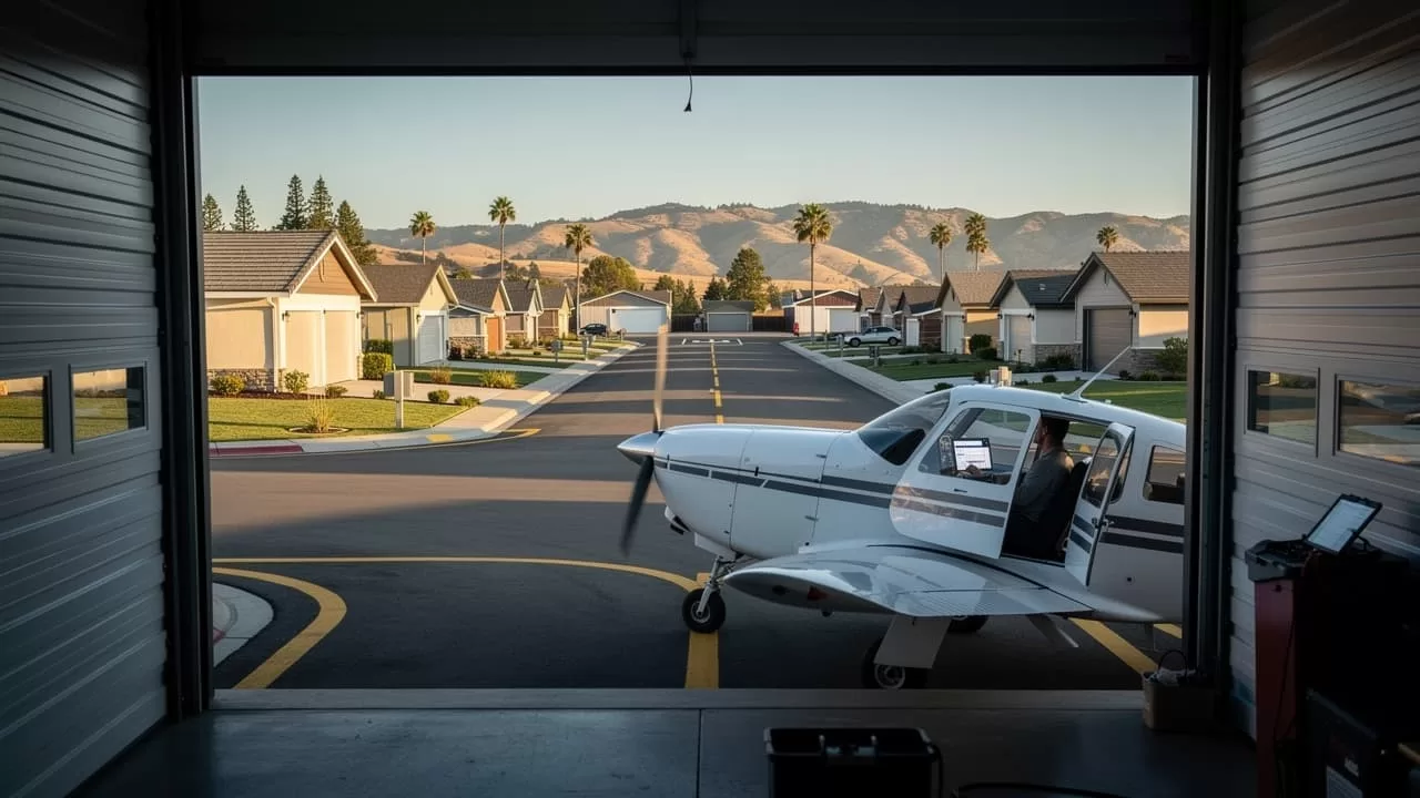 A Cameron Park, nella contea di El Dorado, il tragitto casa-lavoro può iniziare con una checklist pre-volo. I residenti escono dal vialetto, rullano lungo le vie interne e si allineano direttamente sulla pista attiva del Cameron Park Airport. Decollare diventa un gesto ordinario, quasi banale, come girare la chiave nel cruscotto. L’atmosfera, per chi osserva dall’esterno, è fortemente cinematografica. Non è difficile immaginare Doc Brown sbucare da un hangar o Marty McFly guardare l’orologio mentre un’elica inizia a girare. Con una differenza sostanziale: qui non si viaggia nel tempo, ma nello spazio. E senza bisogno di 1,21 gigawatt.