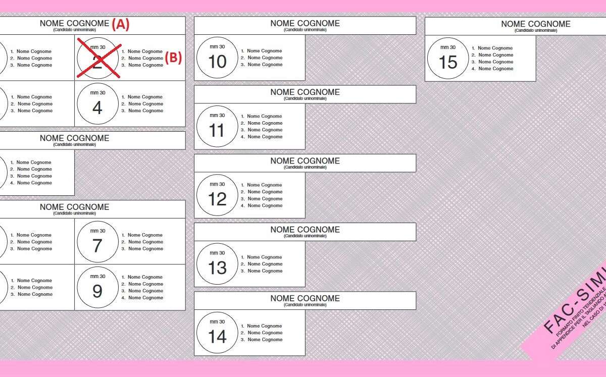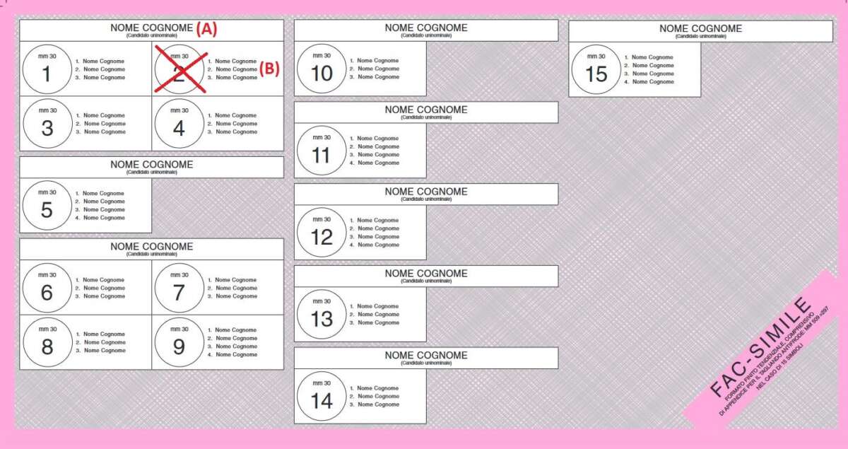 Ma veniamo alla spiegazione del voto: la scheda rosa di esempio raffigurata per la Camera (vale anche per il Senato che è gialla) è composta da due coalizioni, ognuna formata da quattro liste, e da sei liste che concorrono da sole. Ogni singola coalizione o lista singola indica il proprio candidato per il collegio uninominale maggioritario (A), ogni singola lista indica i propri candidati nella lista bloccata plurinominale proporzionale (B). Bene, nel momento in cui si vota come nella figura sbarrano la lista 2, si è VOTATO CONTEMPORANEAMENTE PER IL CANDIDATO (A) DEL MAGGIORITARIO E PER LA LISTA 2 DEL PROPORZIONALE ED I CANDIDATI DELLA LISTA BLOCCATA COLLEGATA (B). Non servirebbe, ma si può anche sbarrare il candidato del maggioritario (A) per “rafforzare” il proprio voto. Si può anche votare e sbarrare solo il nome del candidato all’uninominale (A). I voti espressi in questo modo vengono successivamente divisi tra le liste componenti la coalizione. Non è possibile, pena annullamento del voto, votare disgiuntamente un altro candidato per il maggioritario di altra coalizione o di altra lista singola o viceversa per una lista diversa da quella o quelle che sostengono il candidato per il maggioritario. Insomma, per semplicità, basta individuare e votare per la lista prescelta, sbarrare una sola volta e il voto verrà incanalato automaticamente al proporzionale e al maggioritario.